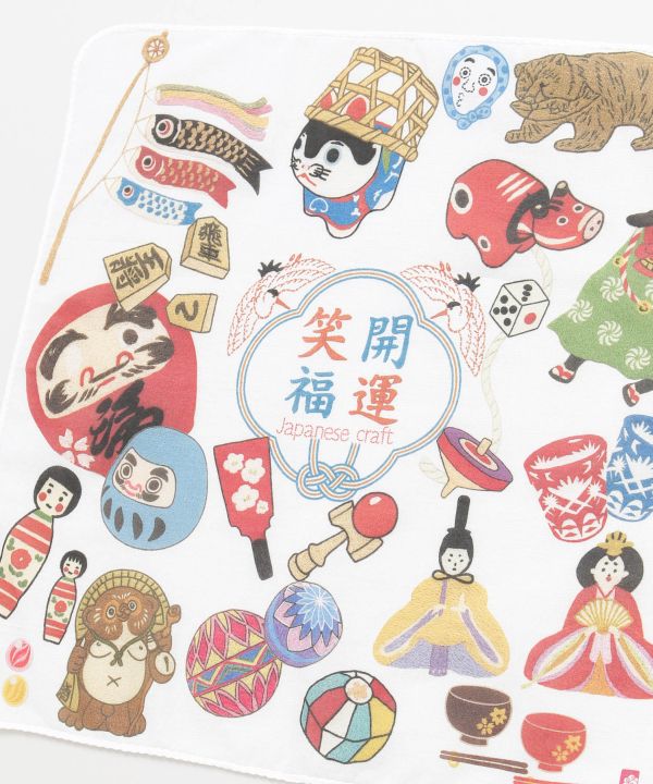 生地から縫製、プリントまで国内で仕上げたこだわりの一枚。日本を象徴するモチーフを「千鳥縫製」という技法を使って刺しゅう風にデザインしました。日常使いはもちろん、飾って楽しむのもおすすめです。