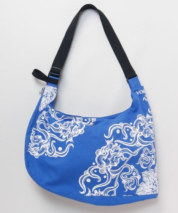 【Amina×VORRUK】タイのアーティストVORRUKとのコラボベストBAG。[HEAVEN OF THE EARTH]天から大地を覗くような構図で、雲と蓮が空と地をつなぎ、日常に潜む自然の美しさや神秘を表現。日々移ろいゆく日常の中で見つけたもの、大地に咲く花、流れていく雲など、身近な自然へのリスペクトを込めた世界観を表現。大容量収納に加え、ポケット付きのベストへと変形する2WAY仕様。旅や野外イベントでも手ぶらで軽快に過ごせる実用性を備えた一着。アートと機能が融合したユニークなアイテム。