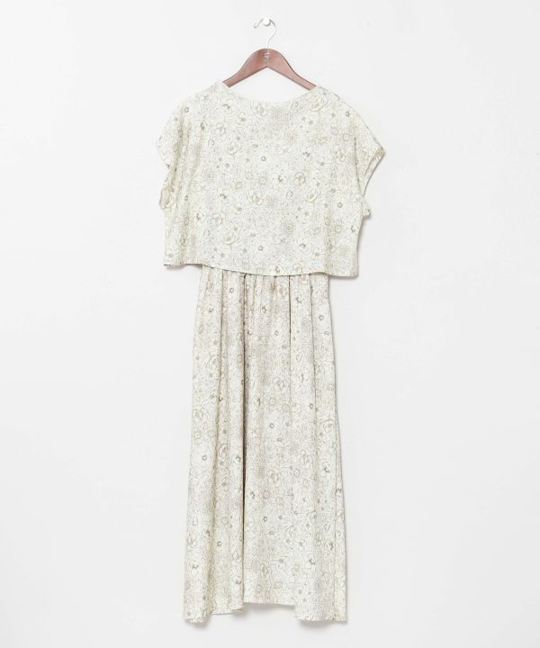 繊細な小花柄が春の空気をまとわせる、トップスとワンピースのセットアップ。ウエストゴムと紐で調整できるワンピースは着心地も快適。裏地付きで透け感も安心、ポケット付きの実用性も魅力。単品でも着回せて、旅先やデイリーにも活躍します。