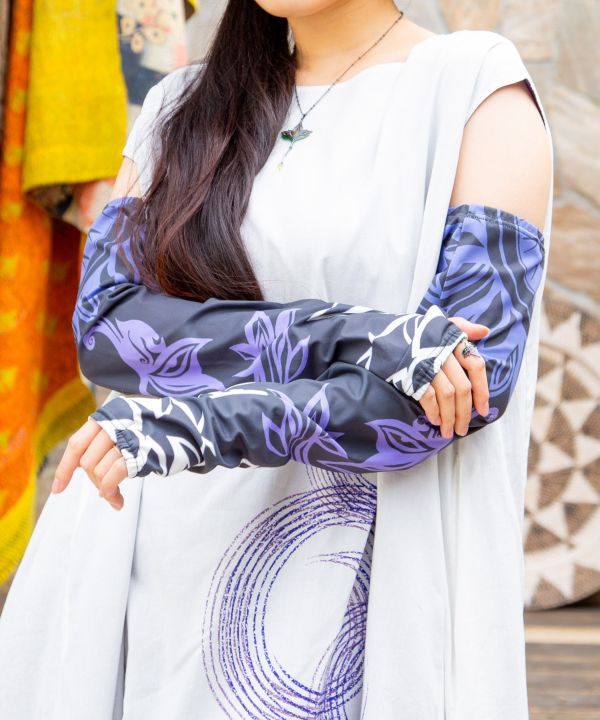 接触冷感・UVカット・吸水速乾の機能を備えた高機能アームカバー。グラデーションがかったネイティブ柄が印象的で、装いに自然と馴染むデザイン。ルーズに着けてもこなれた印象に仕上がり、季節を問わず活躍。