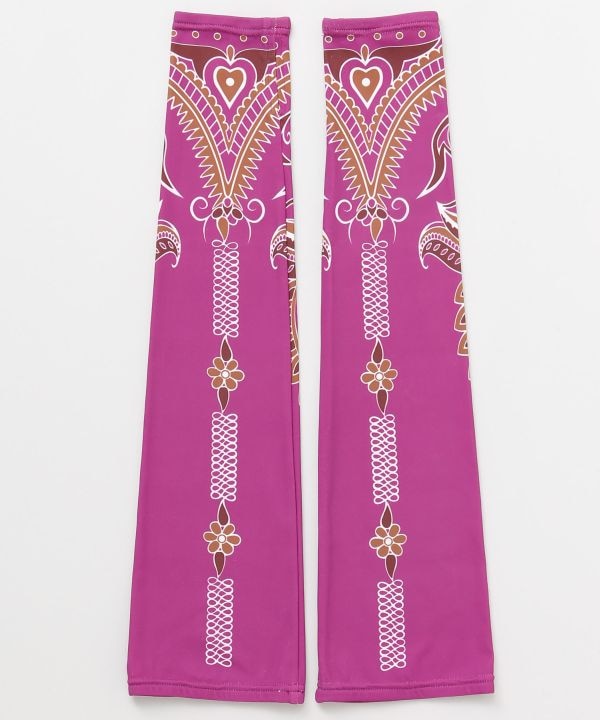 涼感・UV対策・吸水速乾を兼ね備えたアームカバー。妖艶な色柄がエキゾチックな雰囲気を演出し、いつものスタイルにアクセントをプラス。長めの丈でルーズに合わせてもきれいに決まります。