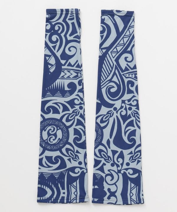 接触冷感・UVカット・吸水速乾の機能を備えたアームカバー。力強く大胆なトライバル柄が腕元に個性を与え、落ち着いた配色で装いに馴染みやすいデザイン。ルーズに着けてもこなれた印象に仕上がり、季節を問わず活躍。