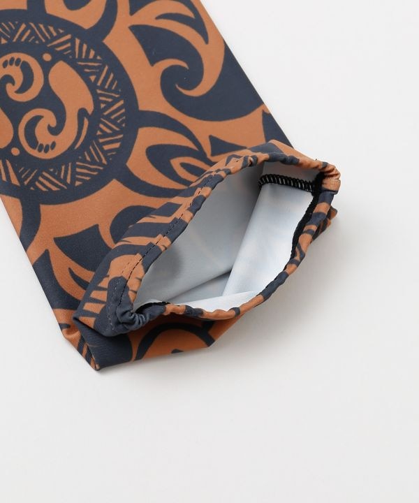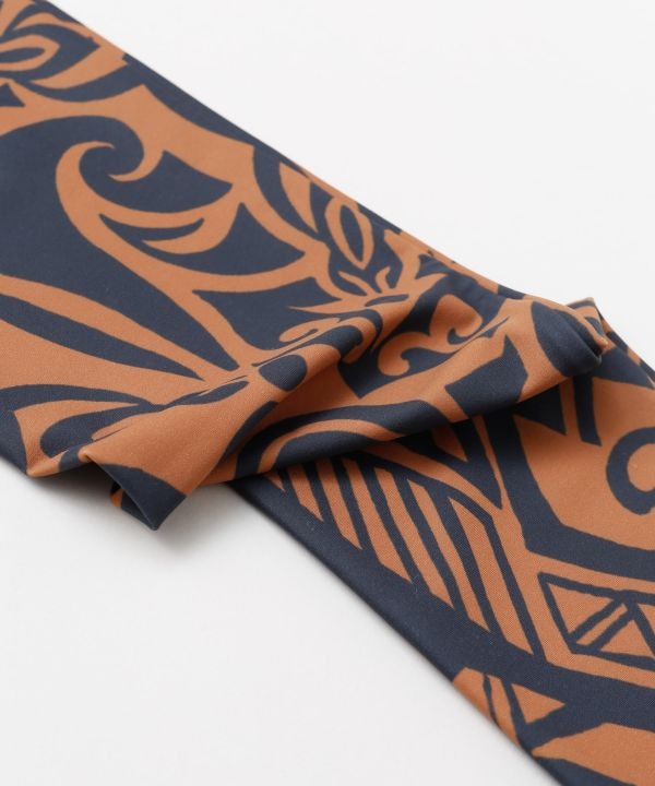 接触冷感・UVカット・吸水速乾の機能を備えたアームカバー。力強く大胆なトライバル柄が腕元に個性を与え、落ち着いた配色で装いに馴染みやすいデザイン。ルーズに着けてもこなれた印象に仕上がり、季節を問わず活躍。
