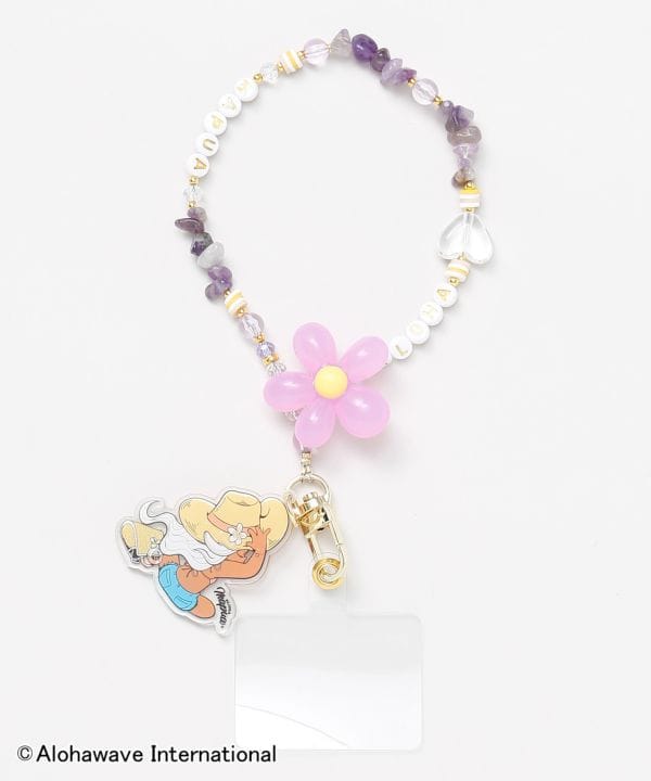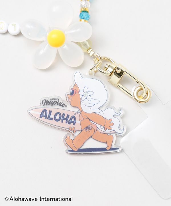 【Kahiko×Aloha Mapua】サーフィンとファッションを愛する、365日ハワイを感じられるキャラクター「ALOHA MAPUA(アロハマプア)」のスマホストラップ。存在感のあるモチーフが目を引き、コーディネートのアクセントにもなるデザインです。
