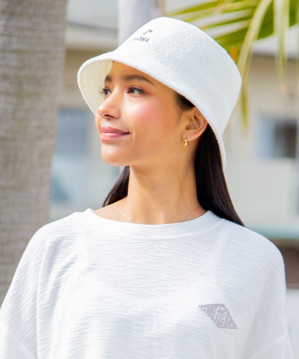 軽やかなパイル素材で仕立てたバケットハット。やわらかな風合いと涼しげな素材感が魅力です。シンプルなフォルムでさまざまなコーディネートに合わせやすく、デイリーからおでかけまで幅広く活躍。気軽に取り入れやすいアイテムです。
