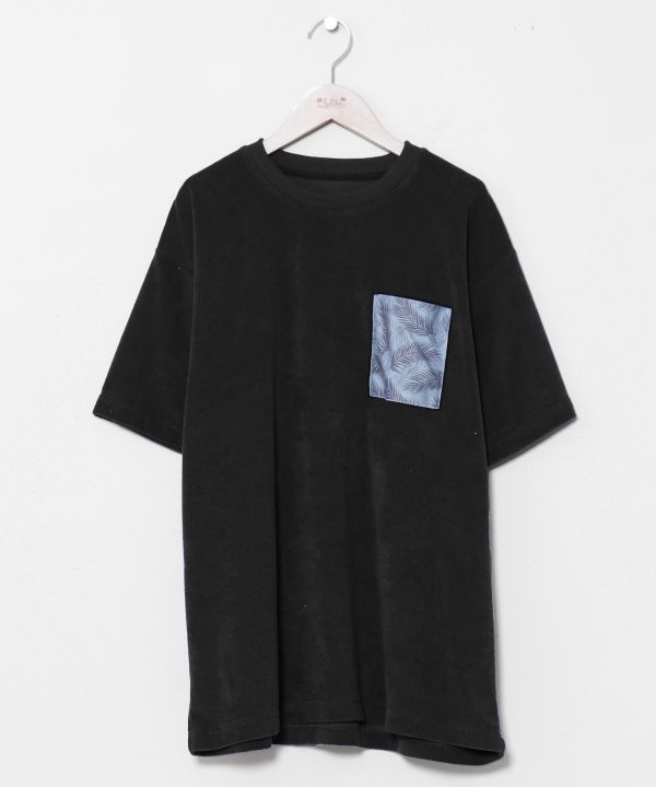 ふんわりとしたパイル生地を使用したメンズTシャツ。やさしい肌触りで快適に着用でき、ポケットにあしらったハワイアン柄の生地がデザインのポイントに。シンプルながらもリゾートムードを感じられる一着で、デイリーからおでかけまで幅広く活躍します。