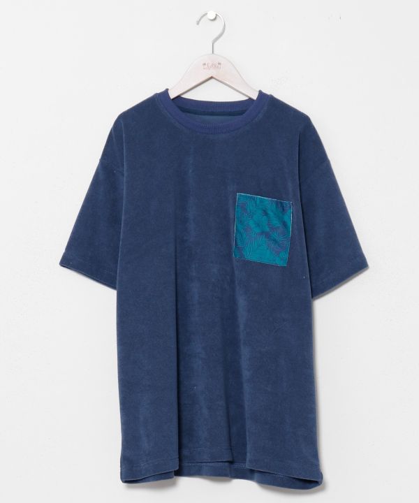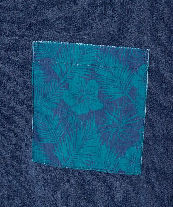 ふんわりとしたパイル生地を使用したメンズTシャツ。やさしい肌触りで快適に着用でき、ポケットにあしらったハワイアン柄の生地がデザインのポイントに。シンプルながらもリゾートムードを感じられる一着で、デイリーからおでかけまで幅広く活躍します。