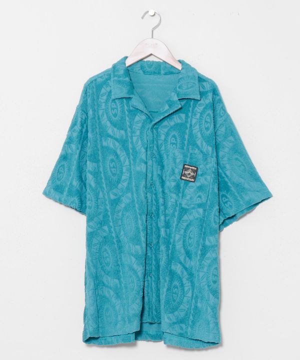 涼やかなオリジナル柄のパイル生地で仕立てたメンズアロハシャツ。やわらかな素材感がリラックスムードを高め、一枚でリゾート感あふれる着こなしが完成します。羽織りとしても活躍し、同シリーズのパンツと合わせたセットアップコーディネートもおすすめです。