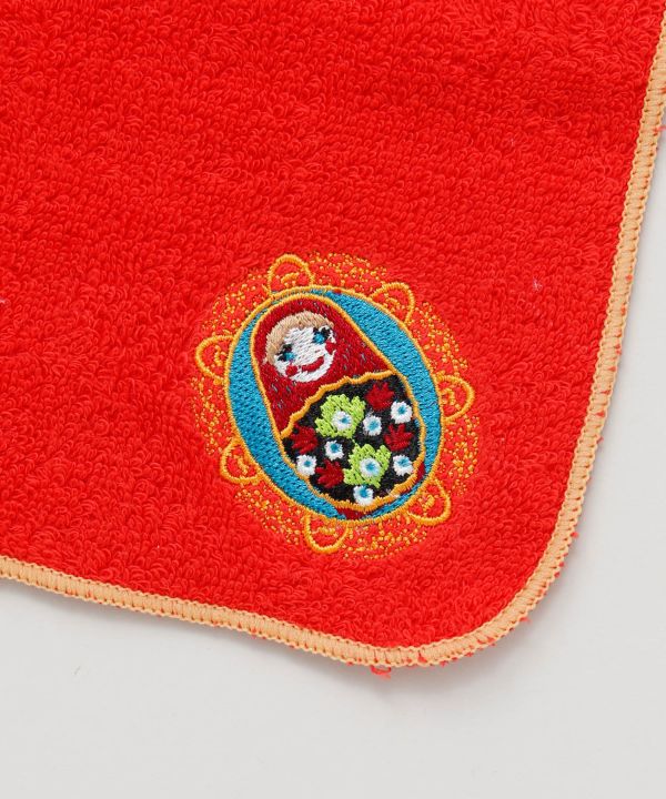 ヨーロッパ各地の民芸雑貨をモチーフにした刺しゅうハンカチ。ポルトガルのガロやイワシ、ドイツのくるみ割り人形、ロシアのマトリョーシカなど、幸運や豊かさをテーマにした図案が散りばめられています。ギフトにもおすすめです。