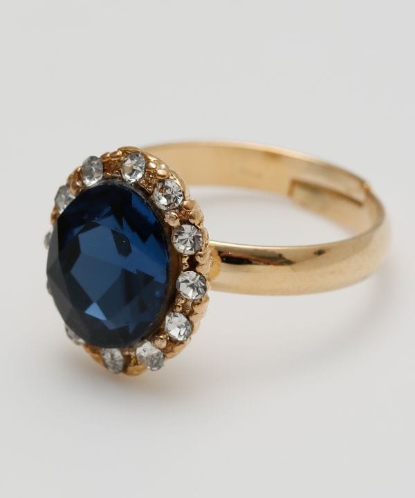 クラシカルな輝きを放つガラスの柱石が印象的なリング。艶やかな合金フレームがストーンの美しさを引き立て、手元に華やぎを添えます。ヴィンテージ感ただようデザインは、コーディネートのアクセントにもぴったりです。