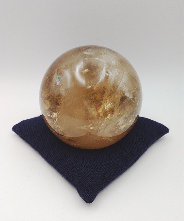 光を当てる度に、内部の景色が広がる最高品質の丸玉。かなりボリュームのあるサイズ感で、透明度・発色共に非常に質の高い天然シトリンです。内部には結晶の成長の記録でもあるファントム構造が幾層も重なり、さらに虹も多く確認ができ、角度や光の強さによって表情が大きく変わります。ぜひ光を通して眺めていただきたい原石です。
