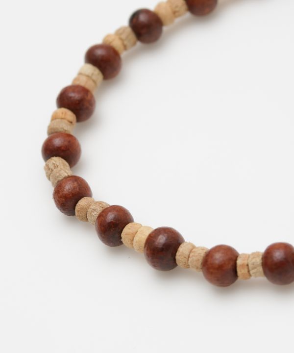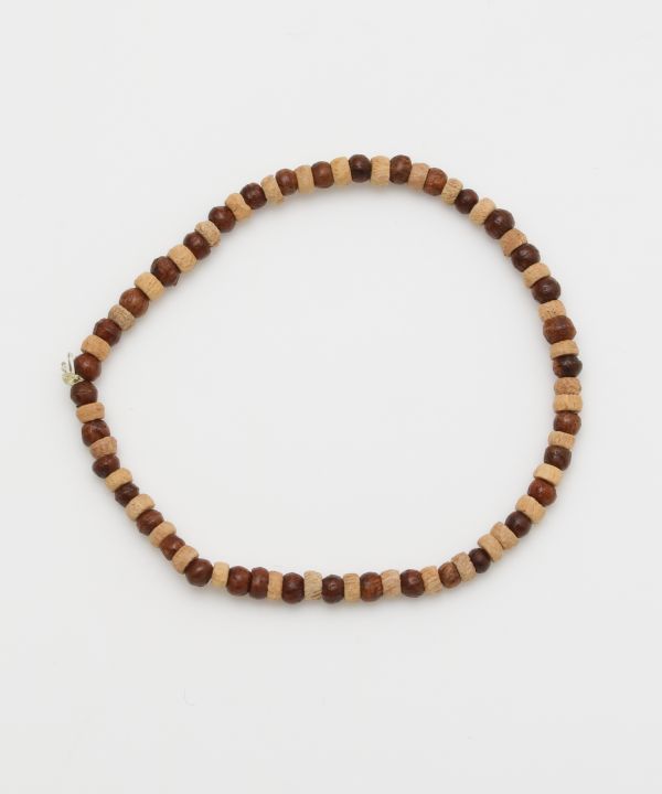 木の染まり具合や木目で異なる風合い。自然の力が生み出すパワーを感じるウッドビーズのブレスレット。豊富なパターンバリエーションの中から、好きなデザインを選んで。自由に重ね付けして個性を楽しもう。