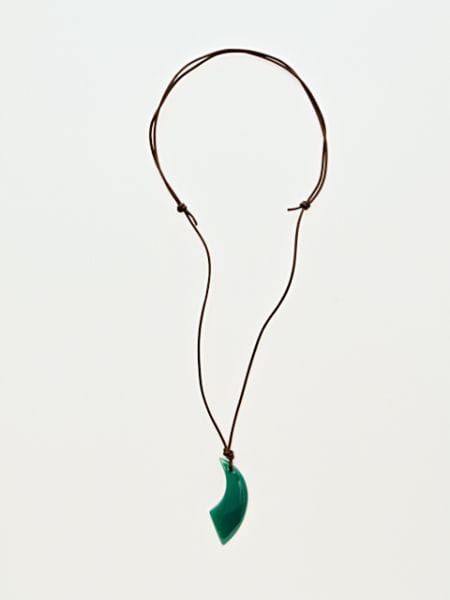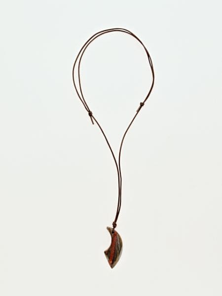 存在感のある天然石のトップを皮ひもに通したシンプルなネックレス。