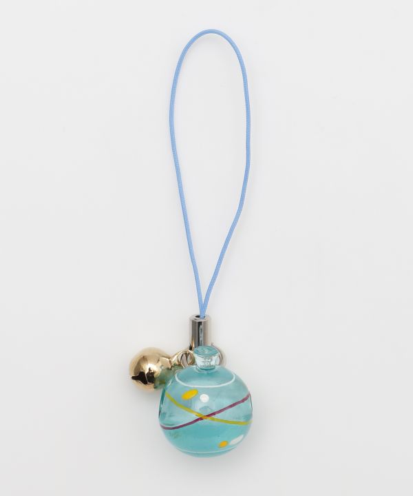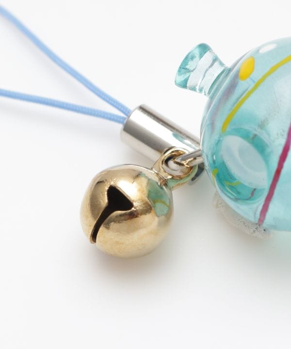 涼しげな水風船のストラップ。万華鏡のように覗くと中には金魚が泳いでいます。