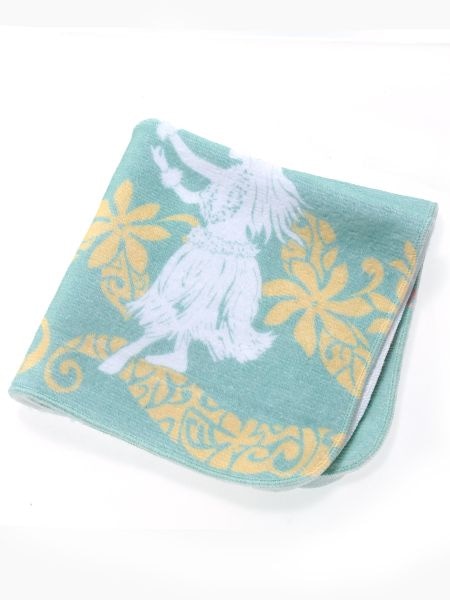 フラガールを爽やかな色合いでプリント。使うほどに柔らかくなるタオルハンカチ。