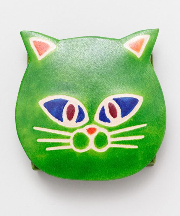 インド・コルカタ地方の名産、山羊革で作られたコインケース。猫のつぶらな瞳に見つめられ、あなたも虜に。色ごとに開運の意味が込められています。緑→家族 青→勉強 紫→仕事 黒→守る 赤→恋愛 黄→金運
