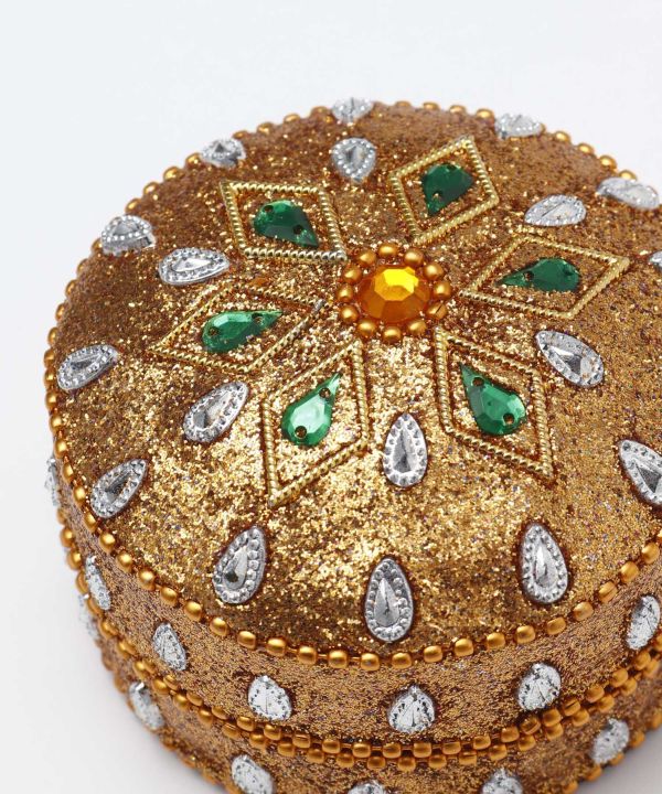 インドの伝統的なミラーワークの小物入れ。アクセサリーや大切な物をしまって。ギフトにもおすすめ。※装飾が剥がれる場合があるため、摩擦や擦れにご注意ください。