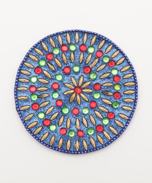 インドの伝統的なミラーワークのコースター。まばゆいミラーがくつろぎの時間に彩りを添えます。