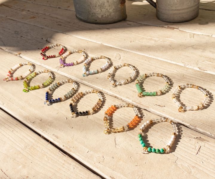 1月〜12月までの各誕生石を使用したブレスレット。お守りとして身に着けてもよし、ギフトにもオススメです。