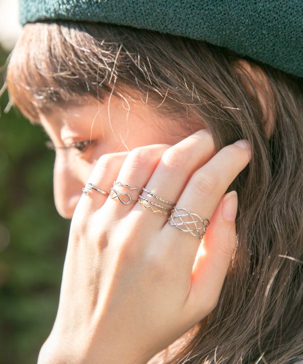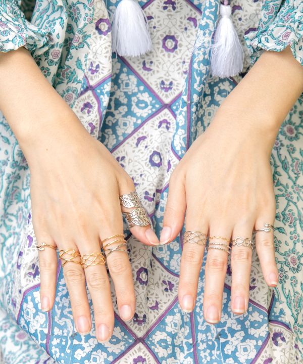キラリと光を反射し、手先に輝きを与えてくれるフリーサイズのリング。きゅっと締めれば、指の関節部分に付けるファランジリングとしてもおすすめ。