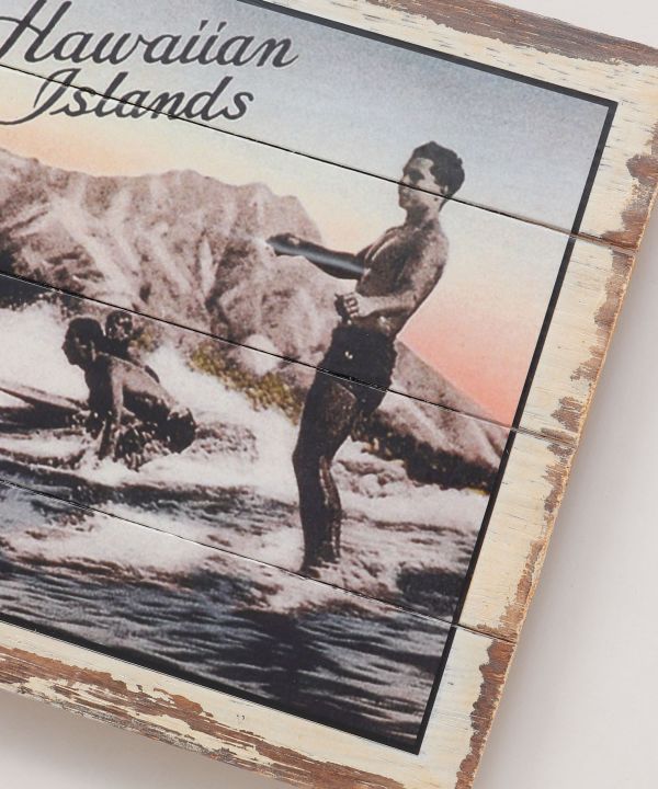 ビンテージ風のプリントが施された壁掛け。日本のお部屋に合わせやすいサイズ感です。