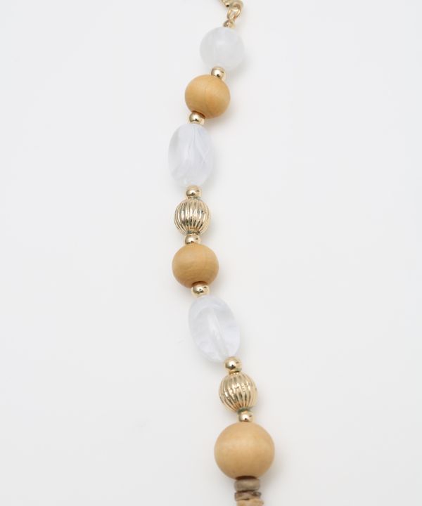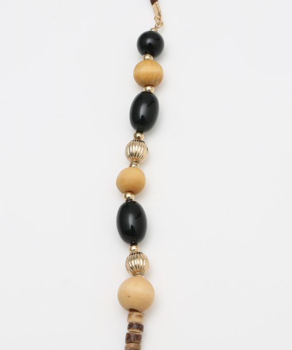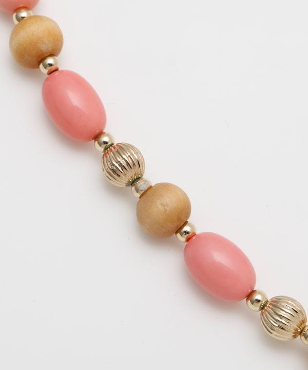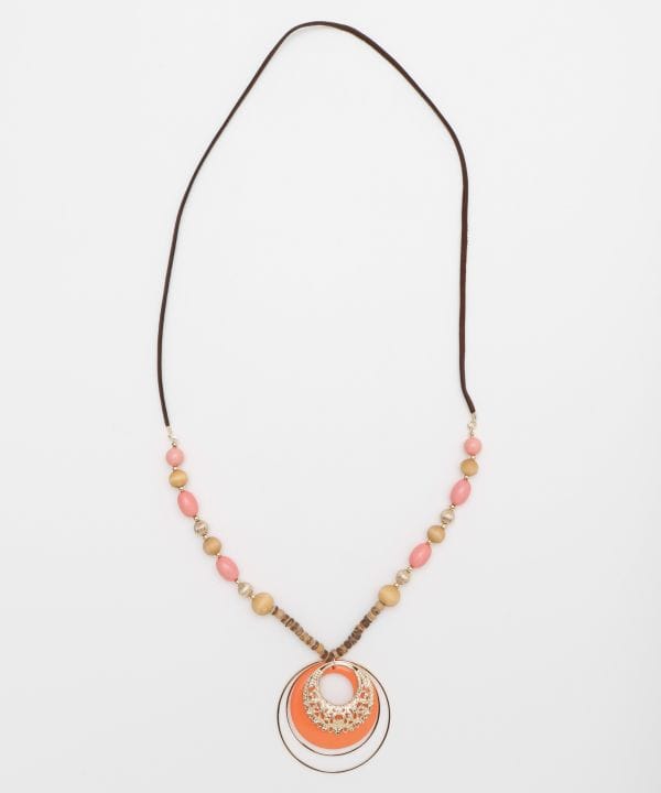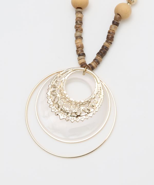 大人気のビッグトップネックレス。上品なゴールド透かしパーツが首下を華やかにし、色によって様々な印象を与えてくれる。