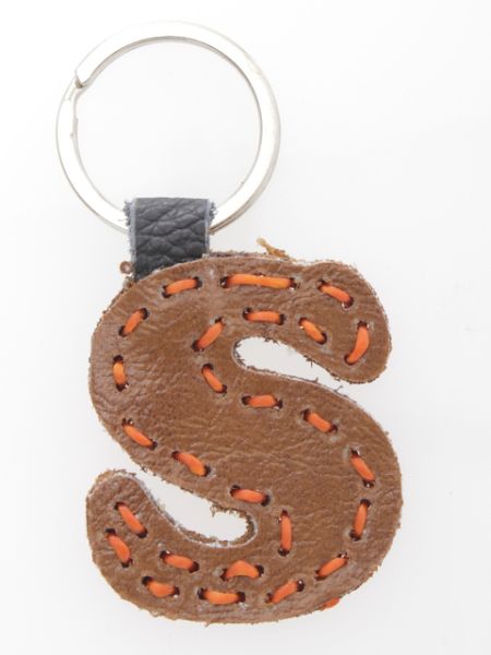 かわいい牛革製のイニシャルキーホルダーです。ステッチがポイント♪※手作りのため、ステッチのお色など異なる場合がございます。どのお色が届くかお楽しみに☆