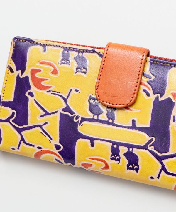 インド・コルカタ地方の名産、山羊革で作られたロングウォレット。金運にご利益のあるモチーフと金運アップカラーの黄色の組み合わせであなたに幸運を。1点1点ハンドメイドで仕上げられており、使う度に手に馴染む一品。