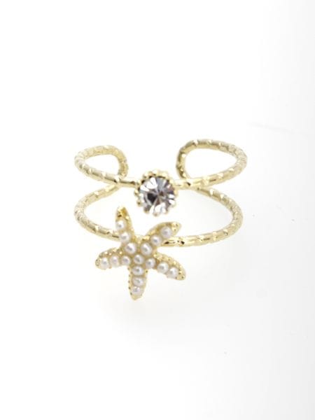 小さいなパールがついたヒトデに一粒ラインストーンが可愛いフリーリング。重ね付けにもお勧めです。