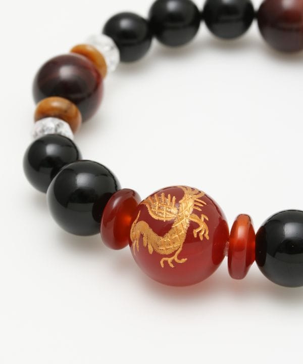 天の東西南北を司る守護神である「四神」を16mmの大玉に施しました。東を司る青龍は成功・出世運。西を司る白虎は商売繁盛運。南を司る朱雀は恋愛・家庭円満運。北を司る玄武は健康・長寿の神。