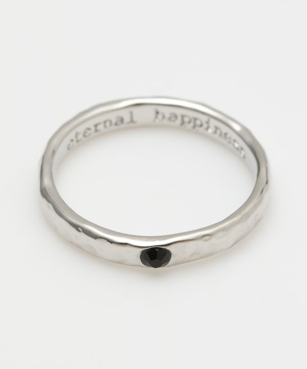 12種類の誕生月カラーの石が埋め込まれたリング。裏には光の刻印があるリバーシブル仕様。内側にはeternal happiness(永遠の幸せ)の刻印入り。ペアリングにもオススメのユニセデザイン。