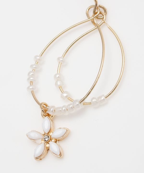 2連フープにプルメリアをあしらった上品なデザインのピアス。耳元で揺れるコーディネートのアクセントとして。