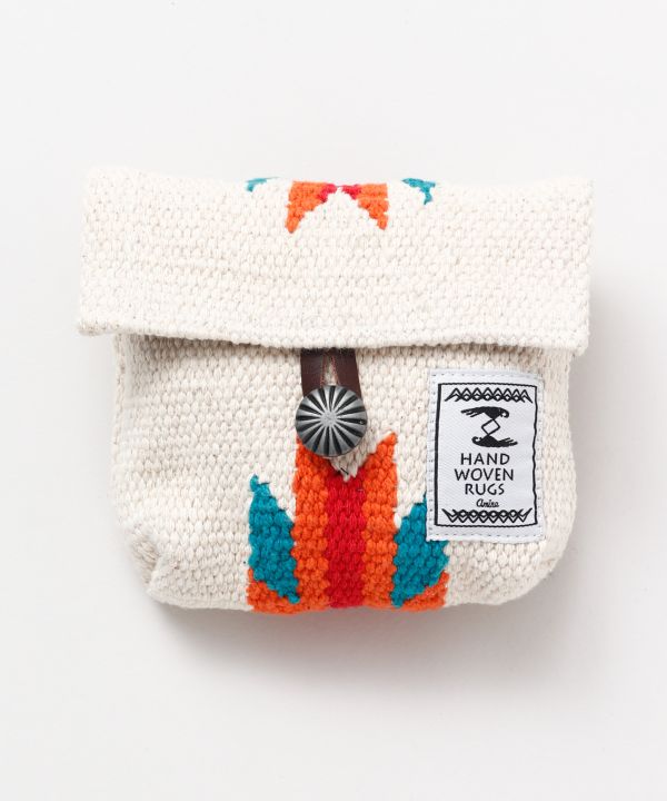 ネイティブアメリカン「ナバホ族」をモチーフにしたデザインと、素朴な風合いのラグ素材のポーチ。コンチョボタンがデザインポイント。様々なものに丁度良いサイズ感にこだわりました。ラグ生地ならではの丈夫な生地が型崩れしにくく、長い間あなたのそばで活躍します。ナチュラルな個性とこだわりをあなたに。