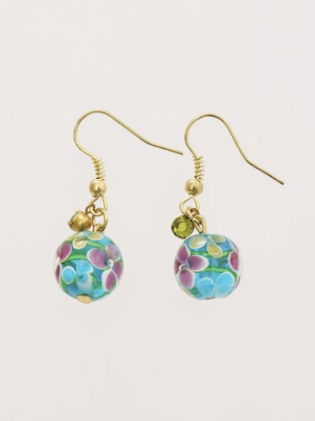 涼やかな色味のガラス玉が耳元を上品に飾ります。キラっと光るラインストーンもポイントです。