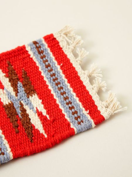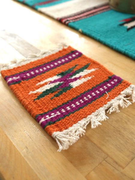 ラグがそのまま小さくなったようなオルテガ柄のかわいいコースターです。