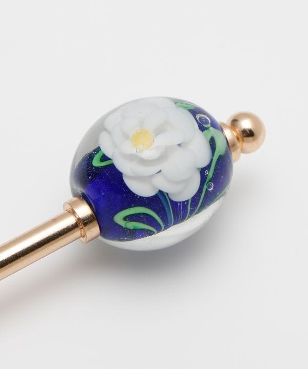 先端がネジ式になっているので、主に直径20mmのとんぼ玉などを取り付け、オリジナルのかんざしを作れます。使用できるパーツは、直径4mm穴が開いている物になります。※トンボ玉は付属しません。