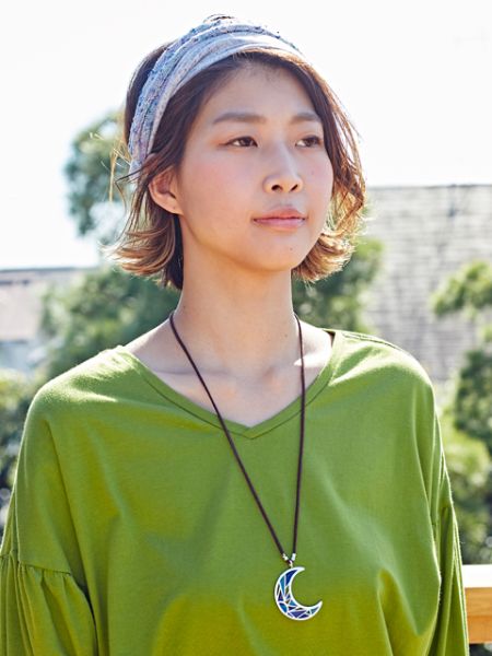 光に当たると色鮮やかに透ける、ステンドグラス調のネックレス。抜け感のある軽やかなデザインです。