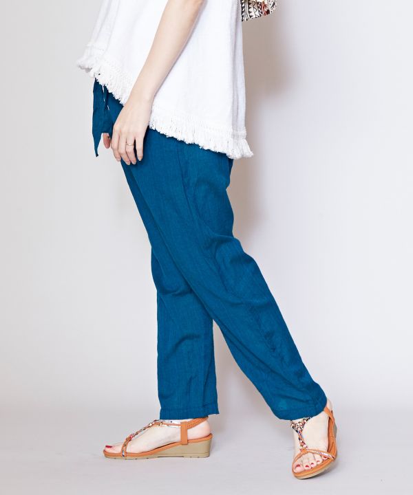 着るほどに馴染む。ネパールコットンで作った軽やかな風合いのイージーパンツ。へその下3寸の位置にある丹田を締めることで、体内に集まる気を引き締める効果があると言われています。折り返し部分の配色がアクセントに。