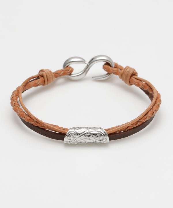 ハワイアンジュエリーのように繊細な彫刻が入ったチューブパーツがポイントのメンズブレスレット。1本で重ねつけしているようなデザイン。