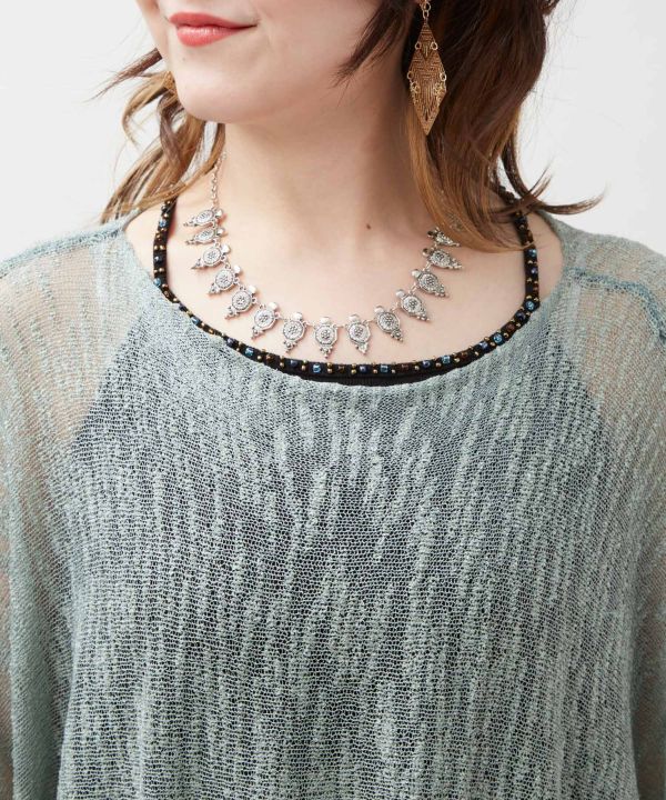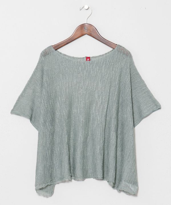 風を感じるネップニットのポンチョ型トップス。程よい透け感で暑い日も涼しく快適に着用可能。ノースリーブとの重ね着にぴったりで、軽やかなレイヤードスタイルが楽しめます。