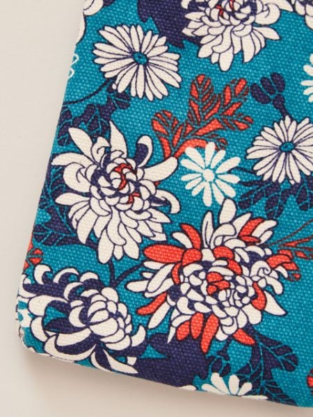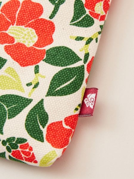 片手でパカっと簡単に広げられるばね口ポーチ。定番の帆布生地に、女性に人気の花モチーフをレトロモダンに表現したシリーズ。京都府