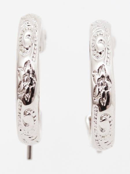 ハワイアンジュエリー調のフープ型ピアス。プルメリアとスクロールのモチーフが施されています。リングとお揃いに付けてもオススメ。台紙付き。