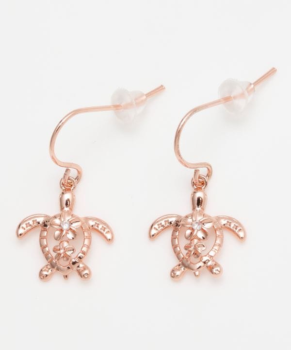 ハワイアンジュエリー調のホヌ型ピアス。ホヌの中にプルメリアとガラス石が入ってます。プチサイズなのでデイリー使いにもオススメ。
