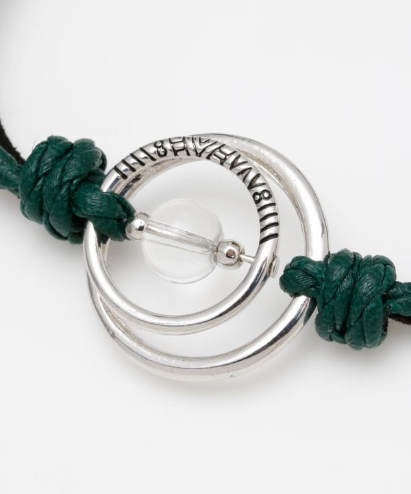 輝く惑星をイメージしたブレスレット。天然石とメタルリングに刻まれているトライバル柄がポイント。