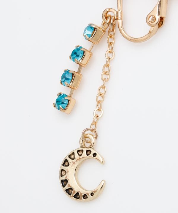 誕生月のオリジナルイヤリング。誕生石色のラインストーンが目を引く上品なデザイン。月と星のアシンメトリータイプ。お好みのカラーで選んだり、プレゼントにもオススメです◎