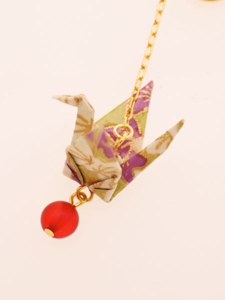 むかしなつかしい日本の遊び「折紙」。ひとつひとつ丁寧に折られるハンドメイドイヤリング。揺れるモチーフで耳元をかわいく飾る。普段使いにも、和装にもおすすめです。