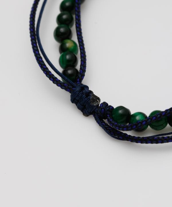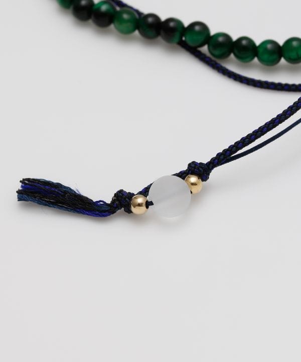 小粒のタイガーアイを基調にした、老若男女問わず身に着けられるシンプルなデザインの紐ブレスレット。京都組紐を用いた滑らかな着け心地が特徴で、お好みで内周のサイズを調整出来ます。※こちらの商品は着色加工を施した天然石を使用しております。