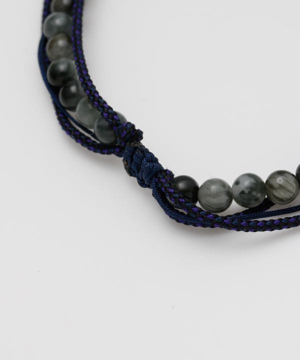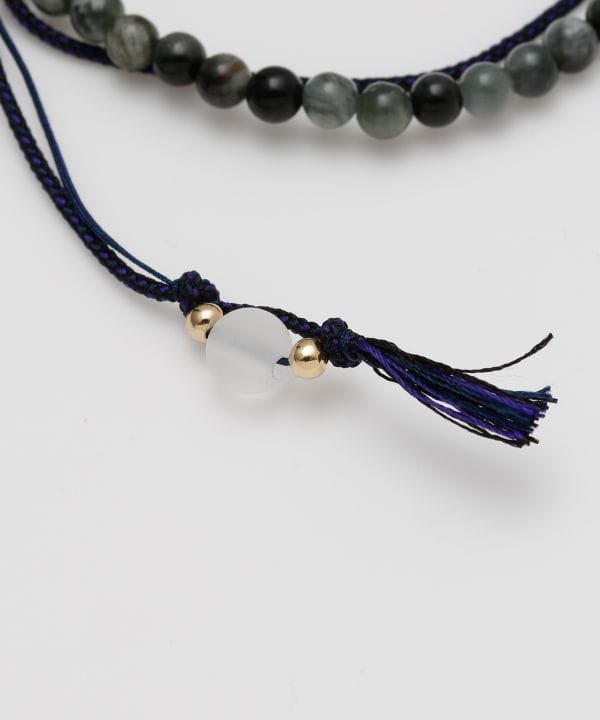 小粒のタイガーアイを基調にした、老若男女問わず身に着けられるシンプルなデザインの紐ブレスレット。京都組紐を用いた滑らかな着け心地が特徴で、お好みで内周のサイズを調整出来ます。