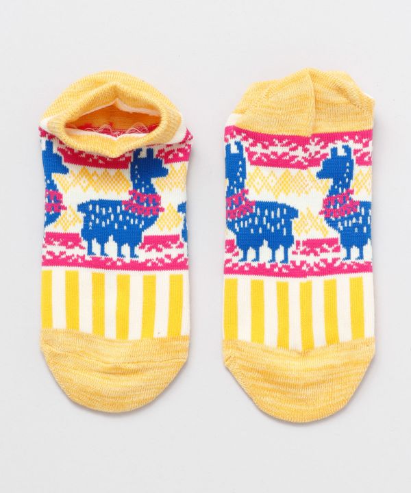 華やかな足元で街へ繰り出そう。太陽、アルパカ、カラベラ、インド象にトルコ猫。世界各国をモチーフにしたくるぶしソックス。あなたは旅のお供にに何を選ぶ?