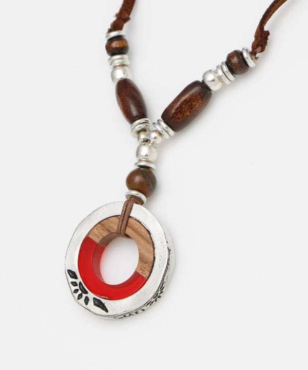自然界のモチーフを刻んでおり、自然モチーフをイメージした色が目を惹く。カジュアルスタイルからリゾートスタイルまでどんな服装にも取り入れやすいリングネックレスです。